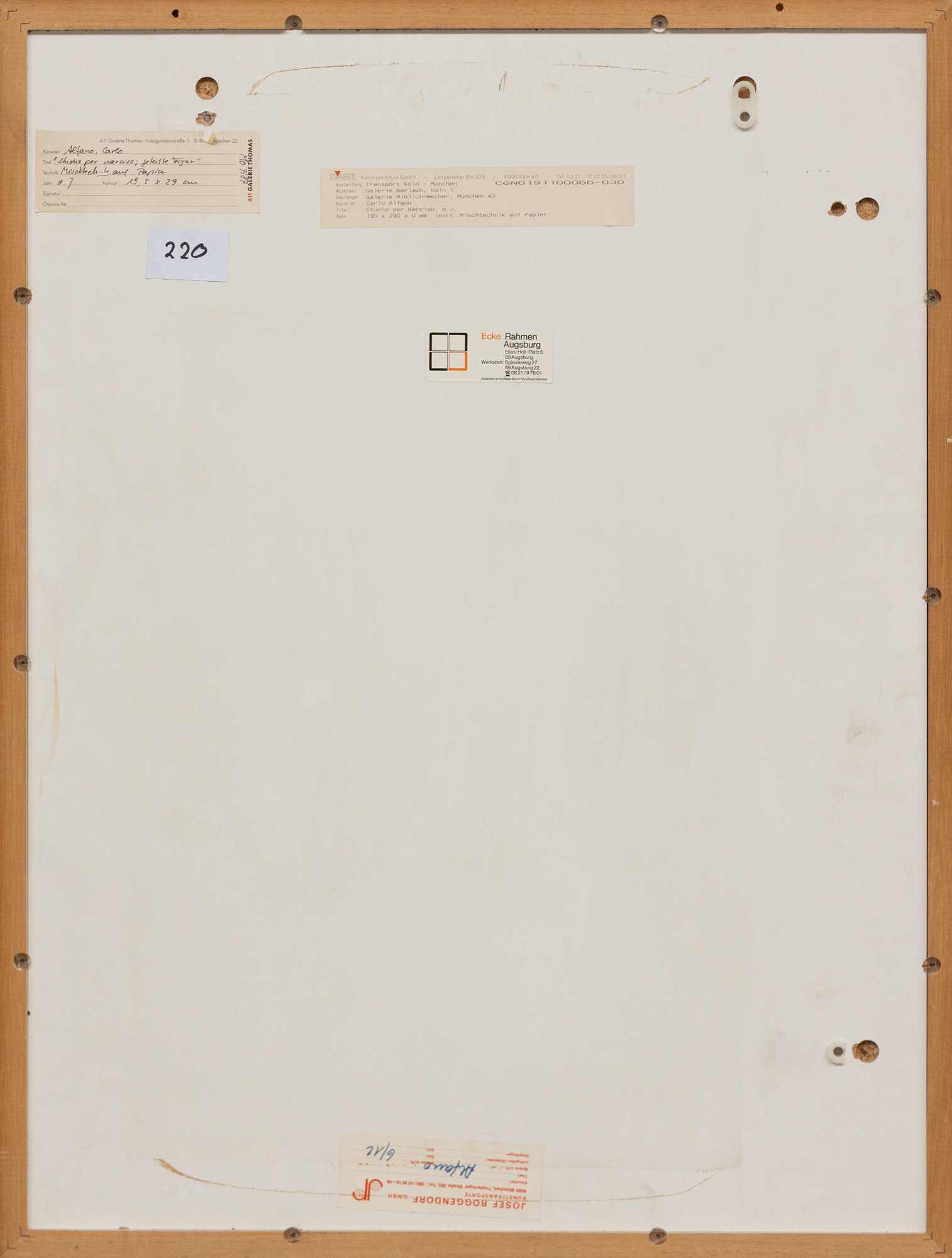Etichetta al retro A11 Galerie Thomas, Munchen