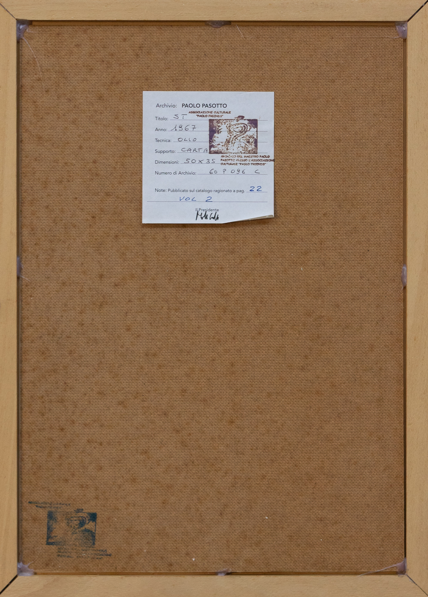 Al retro timbro ed etichetta Archivio Paolo Pasotto