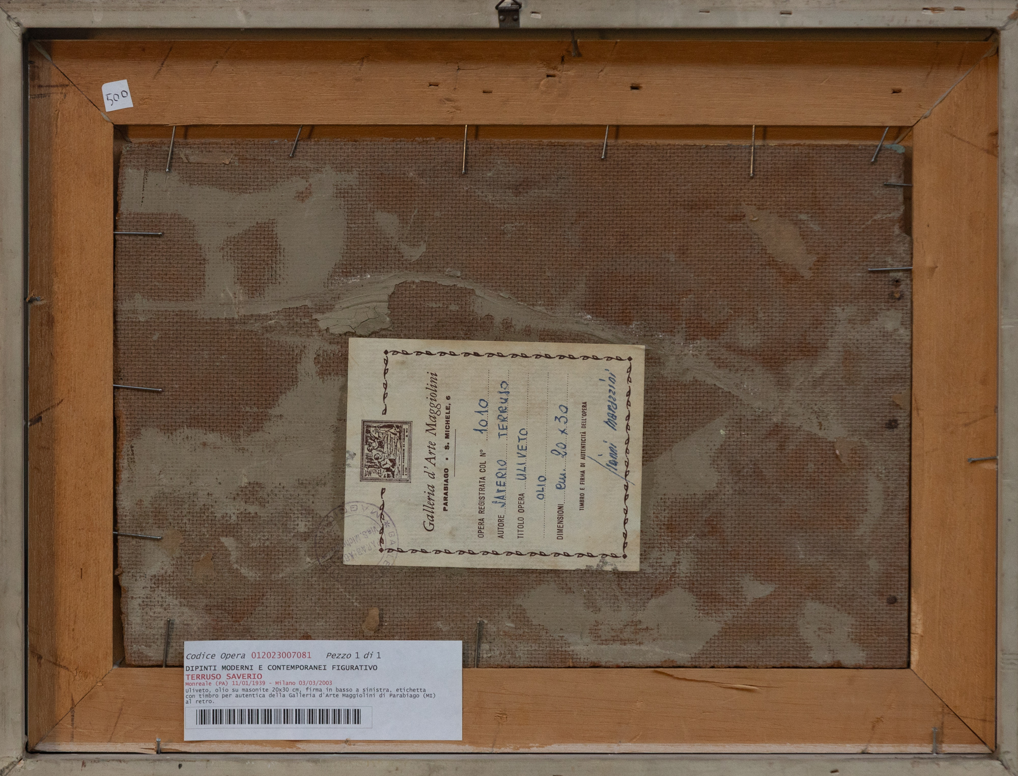 precedente Lotto 185 successivo SAVERIO TERRUSO Uliveto Offerta corrente20,00 €1 Offerta Accedi per offrire SAVERIO TERRUSO 1939-2003 Uliveto Olio su masonite cm. 20x30 Firma al fronte Certificato a cura di Meeting Art, Vercelli PROVENIENZA Collezione privata, Modena